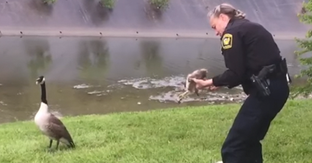 Last year a police officer, James Givens found a mother goose knocking at his car door to get his attention. Her gosling needed help because it was trapped in a balloon strip. The officer called 112 but no help arrived so he called his fellow officer, Cecilia Charron who could save the bird. As soon as the little gosling was free, the duo went away. It was the most memorable incident of Cecilia’s career!